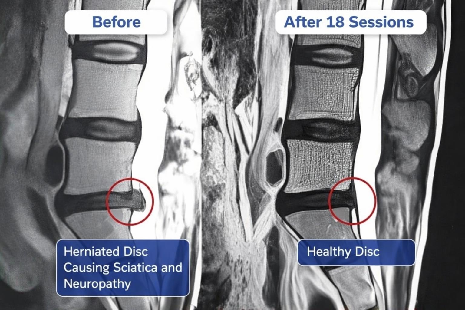 Back and neck pain often develops when spinal discs or joints become compressed, irritated, or damaged. This can place pressure on nearby nerves, leading to stiffness, limited mobility, or pain that travels into the arms or legs — commonly known as sciatica.